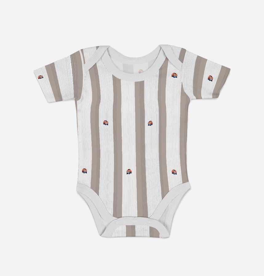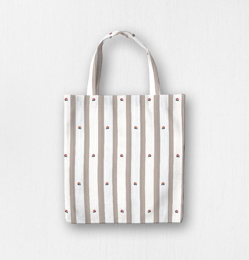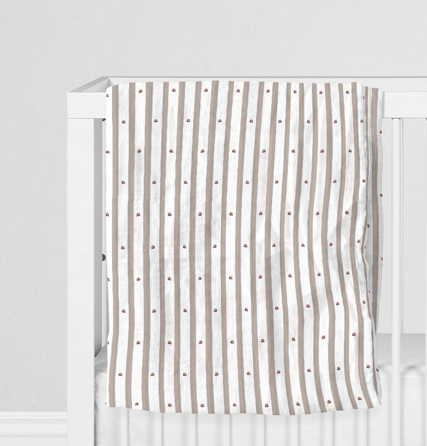 ベージュとグレーの細いストライプの上にレッサーパンダ