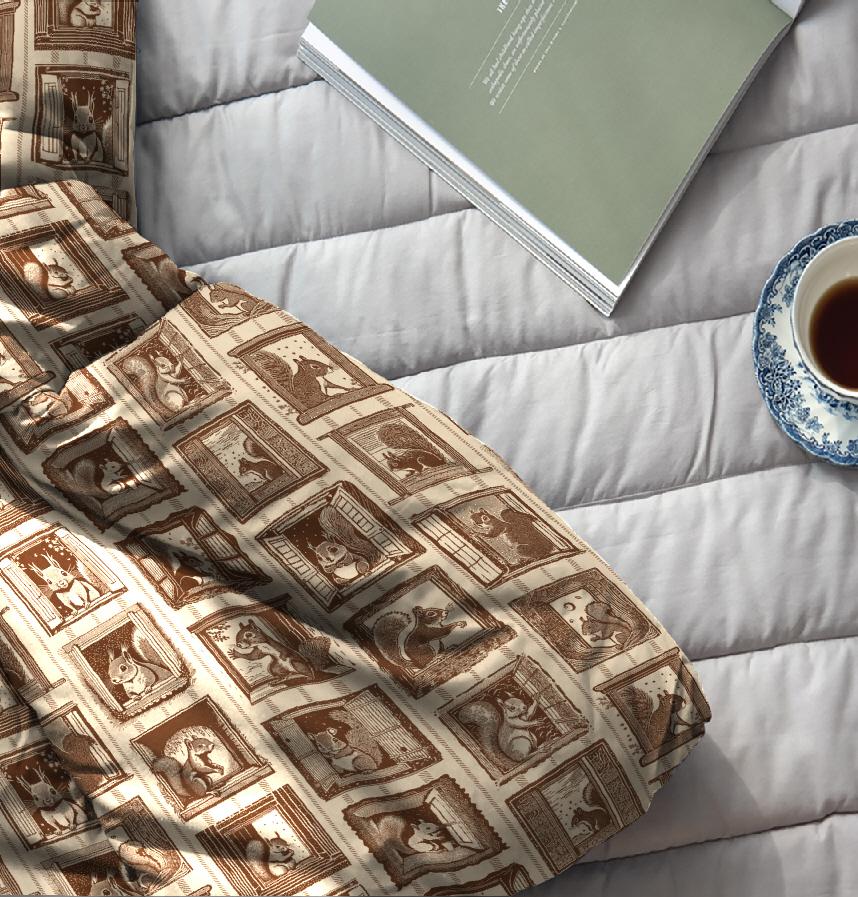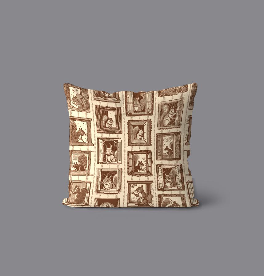 窓からリスが覗いたり、座っていたり、何か食べていたり。