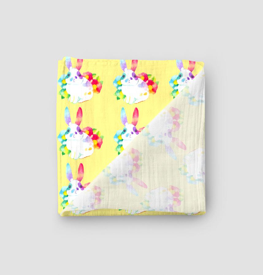 パターン説明 うさぎ+椿の花のカラフルでかわいいパターンです。
