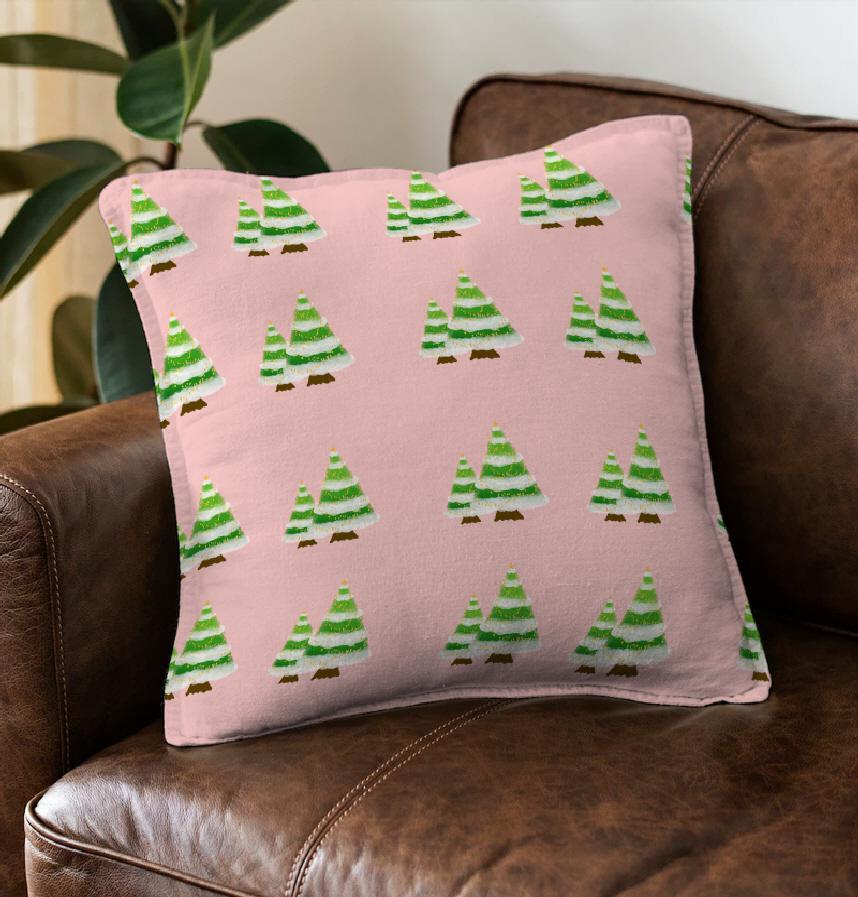 パターン説明 ピンク背景の温かい雰囲気のあるクリスマスツリーのパターン