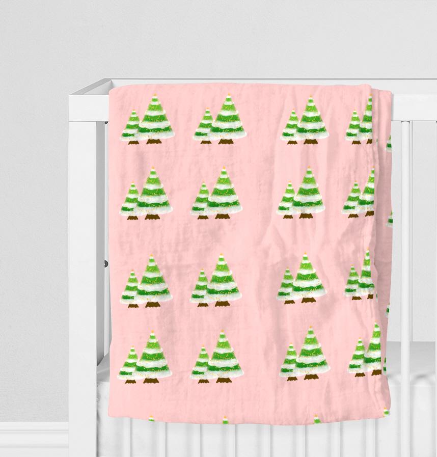 ピンク背景の温かい雰囲気のあるクリスマスツリーのパターン