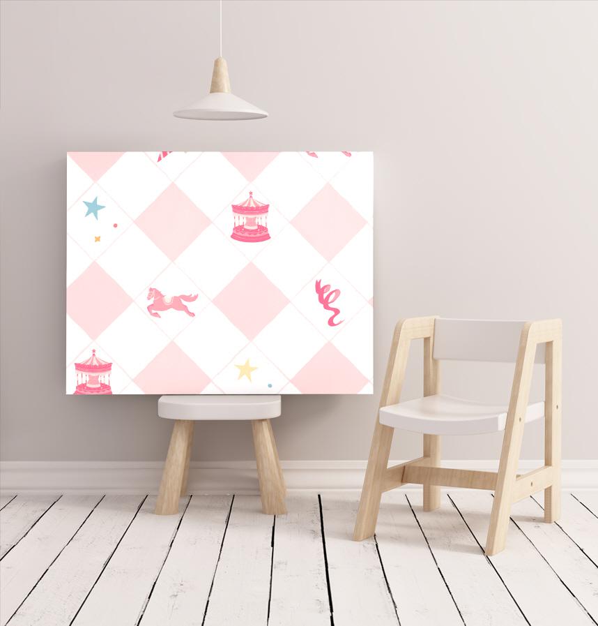 パターン説明 メルヘンな世界観のポニーとメリーゴラウンド柄