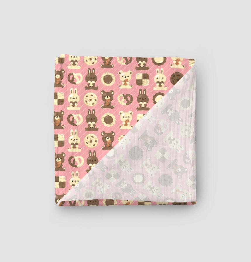 パターン名 うさくまチョコ&クッキー ピンク (25×22.8cm)
