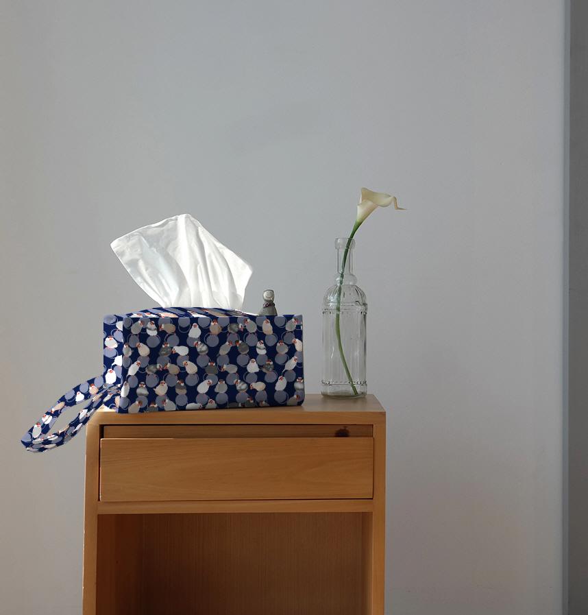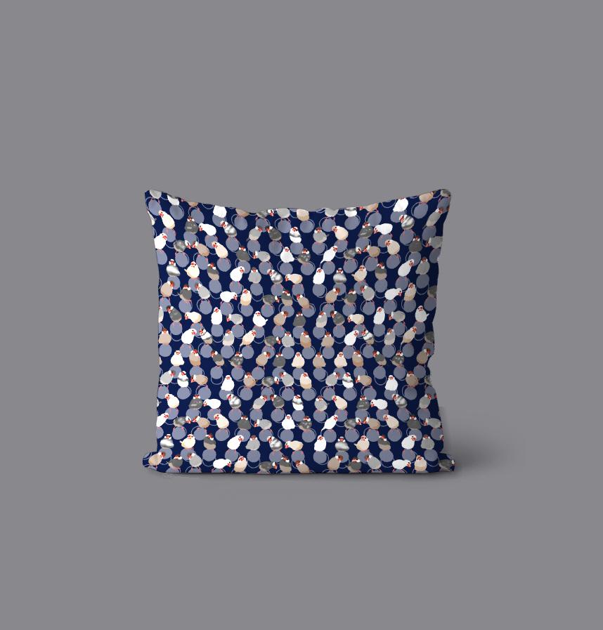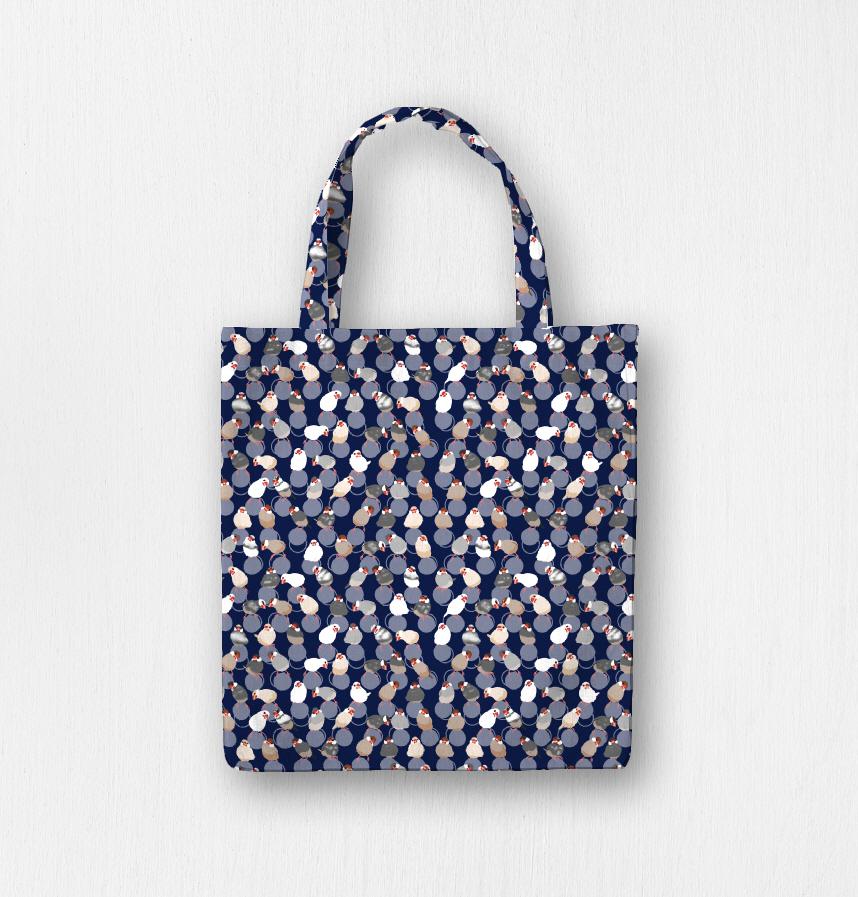 パターン名 文鳥繚乱(文鳥いっぱい)ネイビー背景(サムネイル約24cm四方) New:色味調整