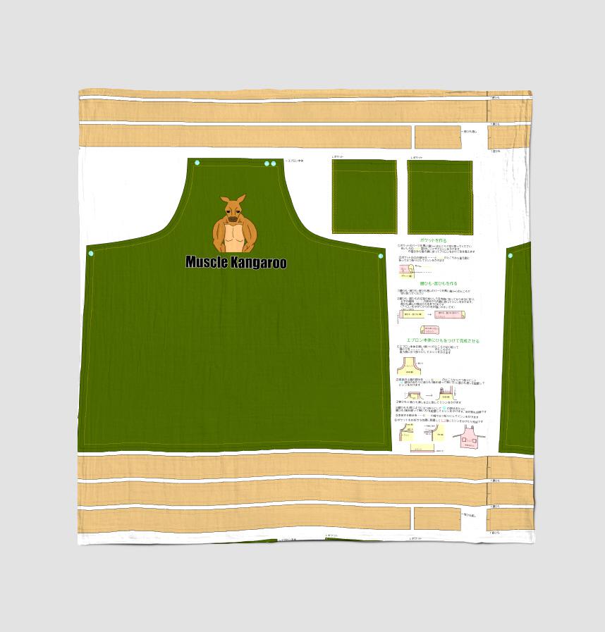 レシピ通りに切って縫うだけでオリジナルのエプロンが作れるキット風のデザインです。