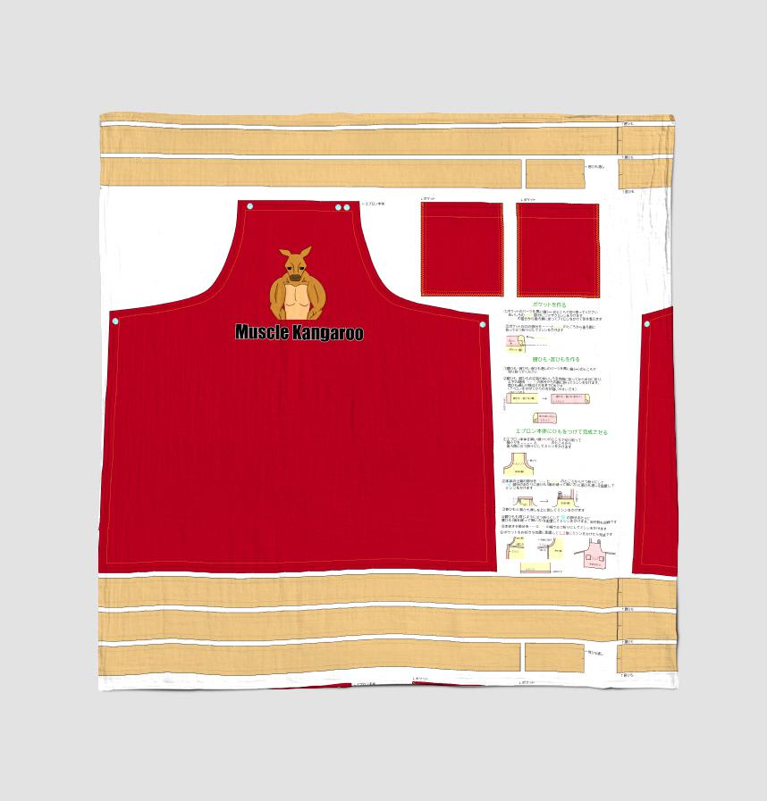 レシピ通りに切って縫うだけでオリジナルのエプロンが作れるキット風のデザインです。