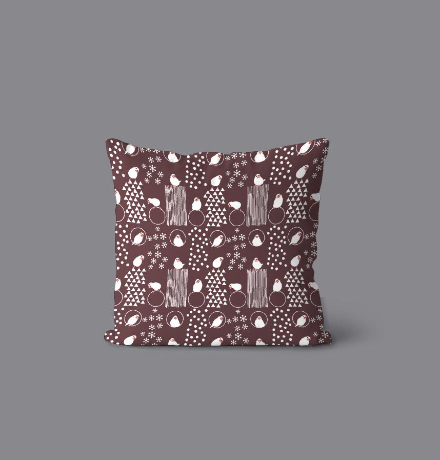 落ち着いた色味の北欧風なちょっと縦長模様に白文鳥を散りばめました(サムネイル約16cm四方)。