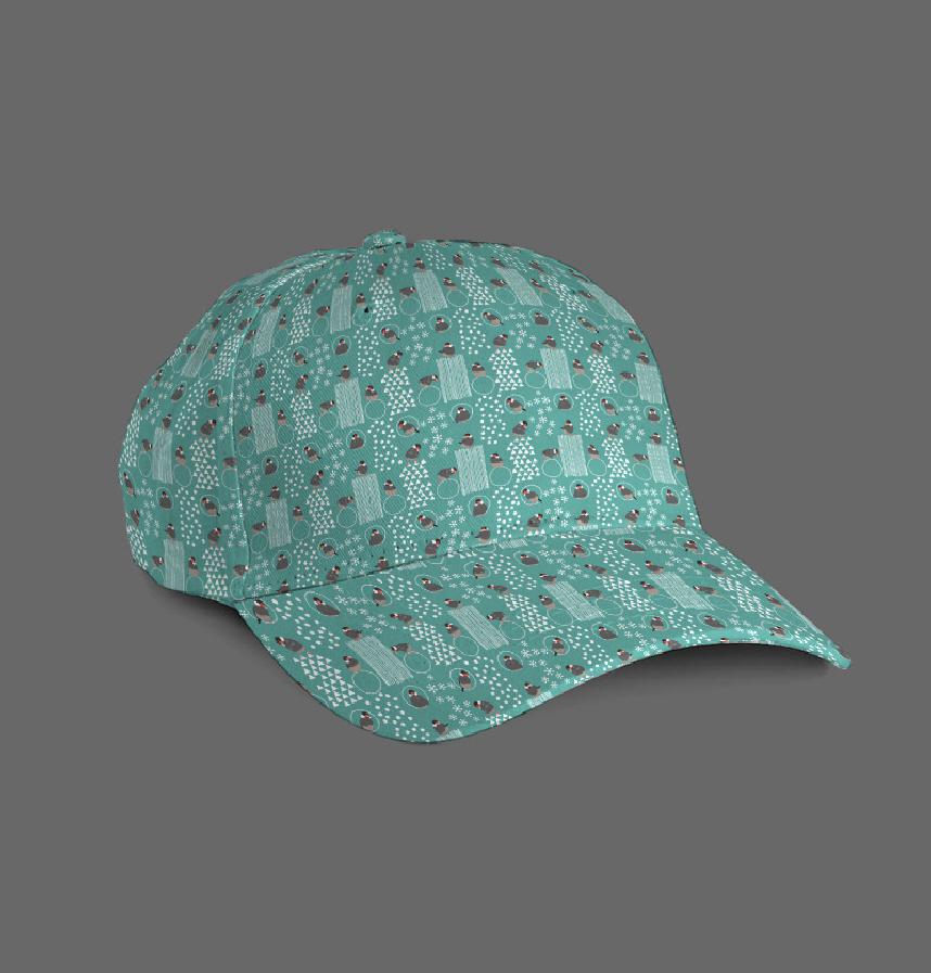落ち着いた色味の北欧風なちょっと縦長模様に桜文鳥を散りばめました(サムネイル約16cm四方)。