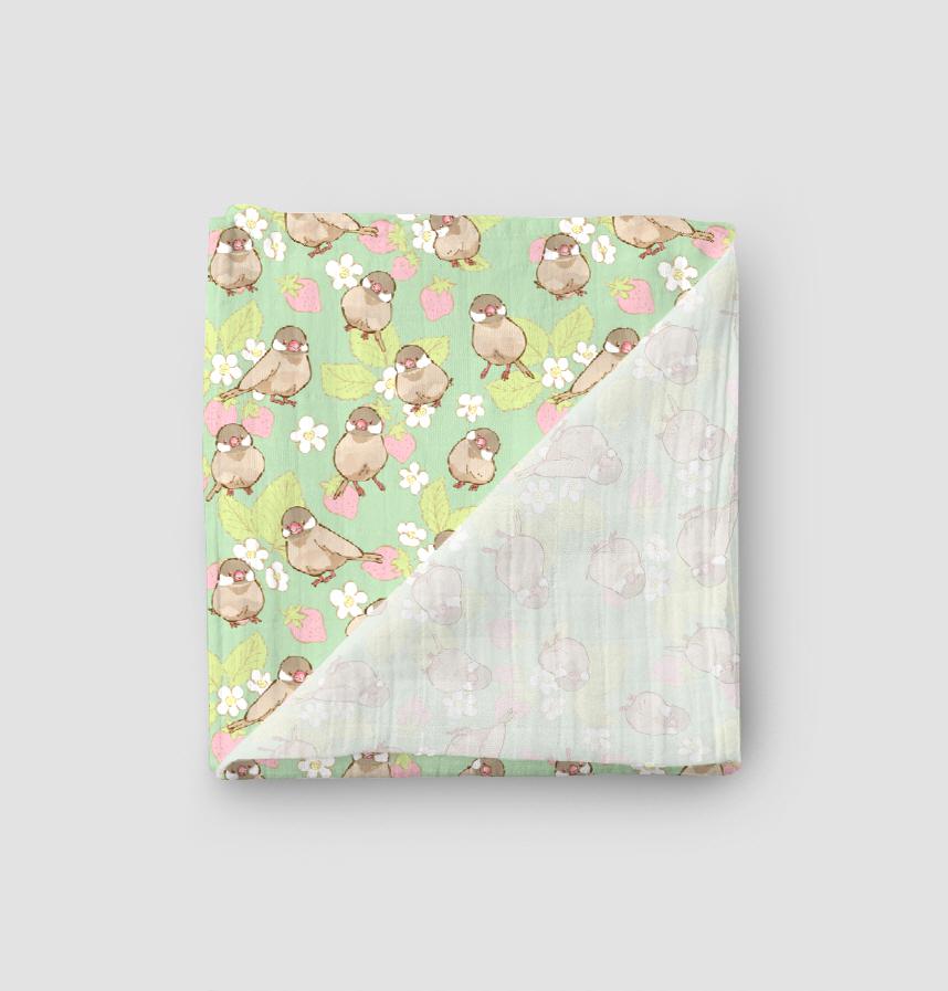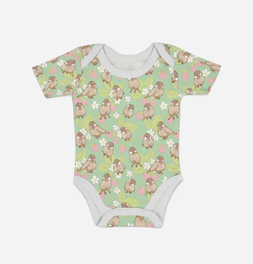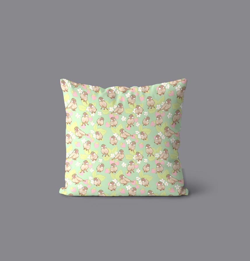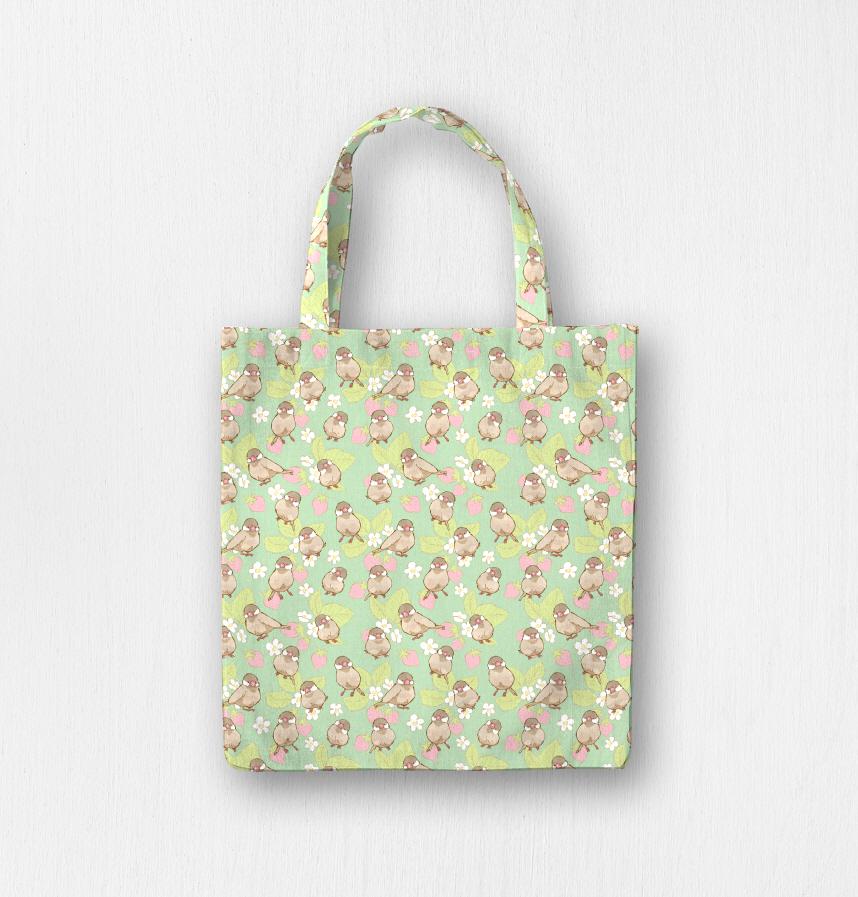 パターン説明 シナモン文鳥といちご柄です。