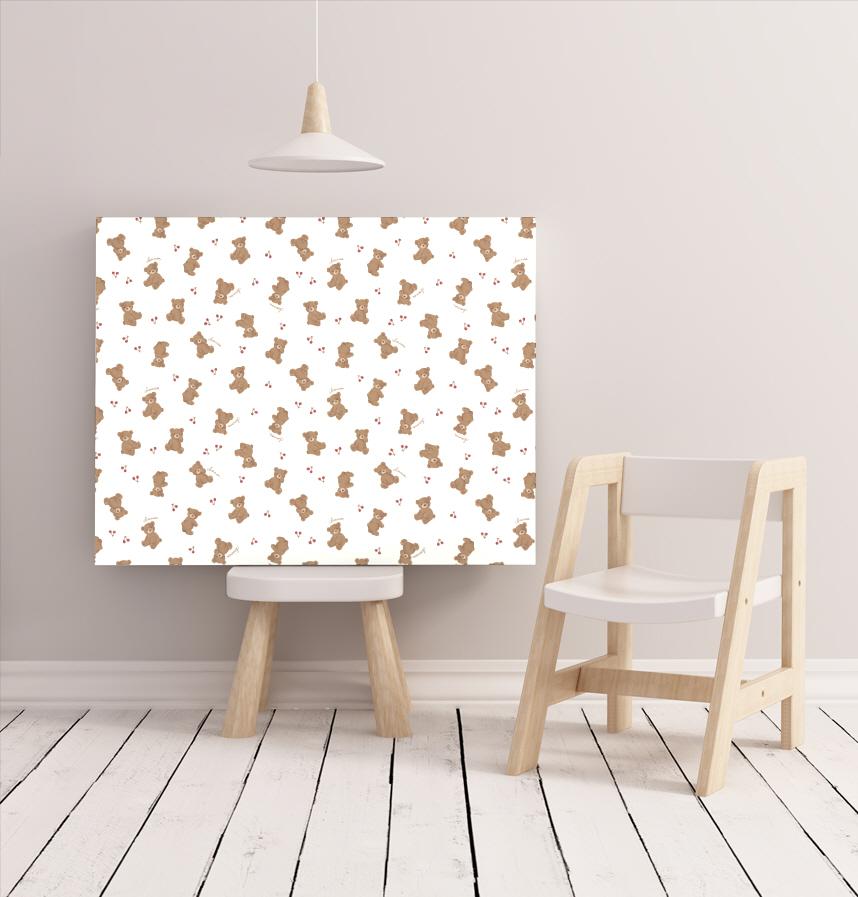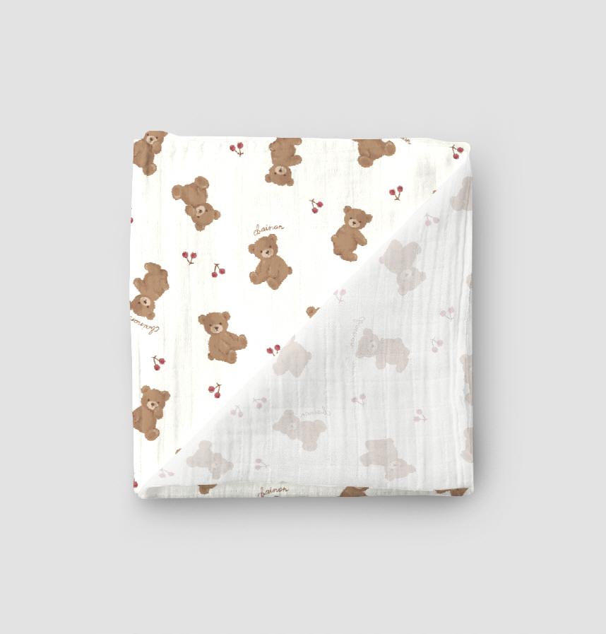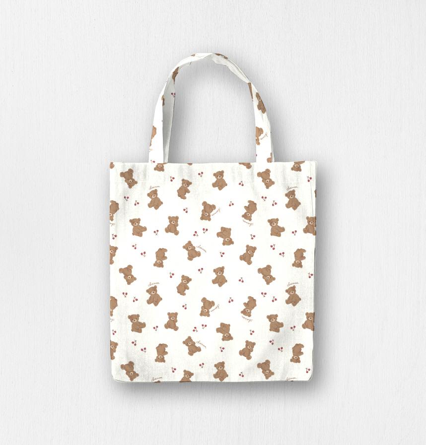 人気のミモザとテディベアでベビーアイテムの定番的モチーフさくらんぼを組み合わせました