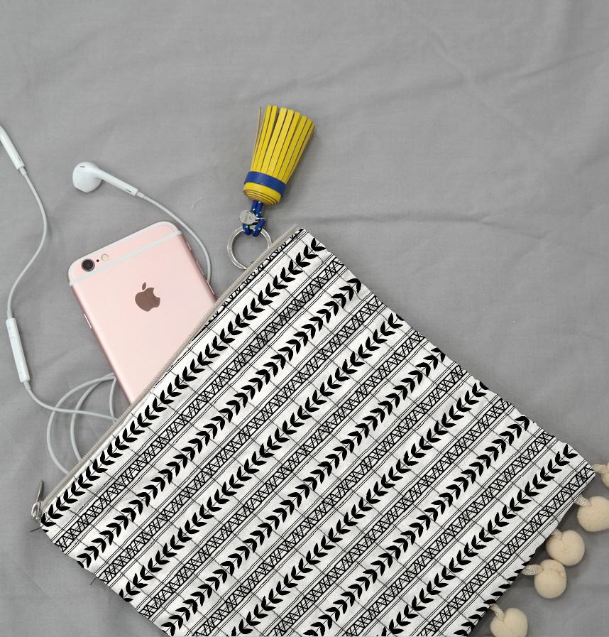 パターン説明 縞模様とジグザグ柄、そして葉模様が組み合わされたパターンです。