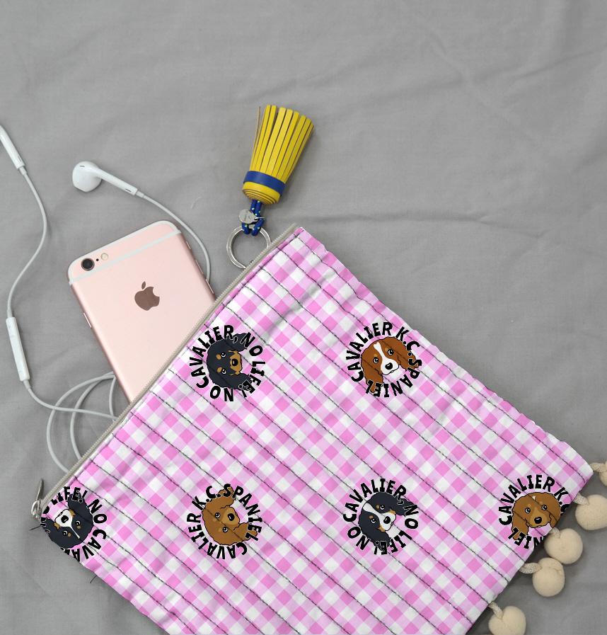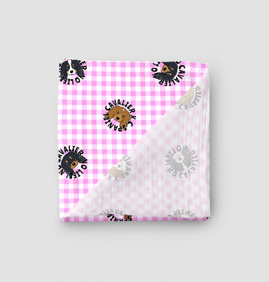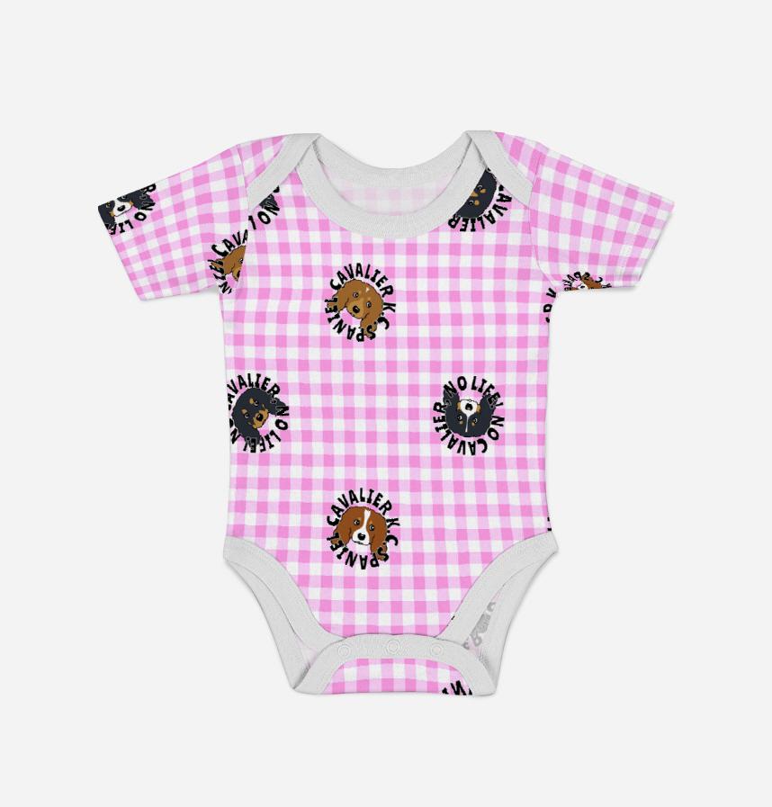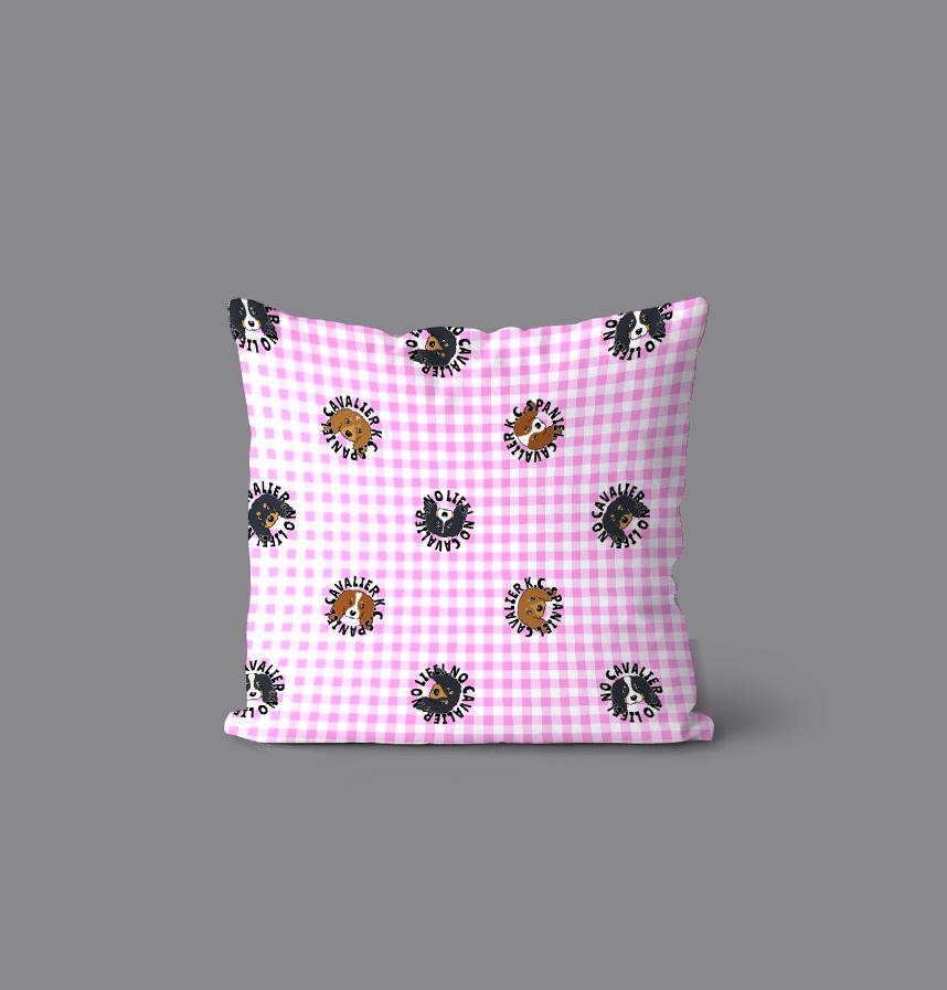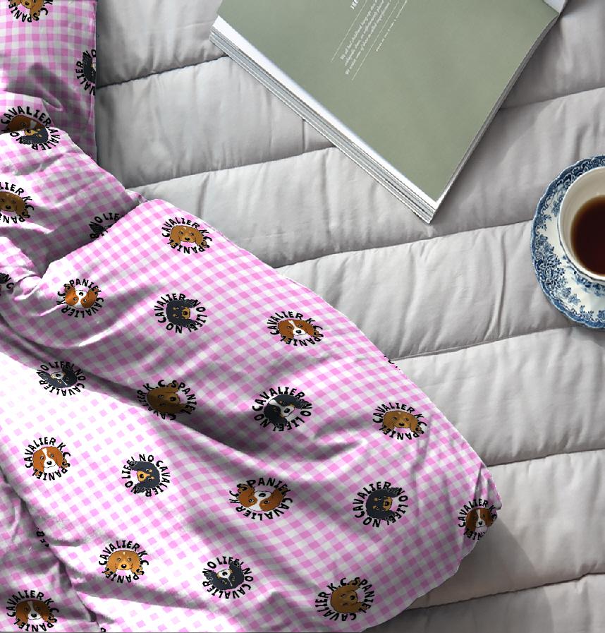 ギンガムチェック地に4カラー8パターンのキャバリアさんを並べました