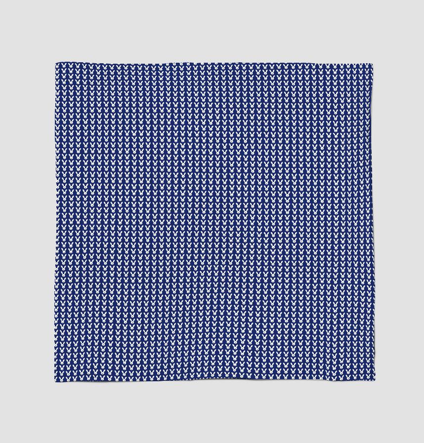 パターン説明 濃いブルーを背景に小さな白いウサギが配置されているパターン