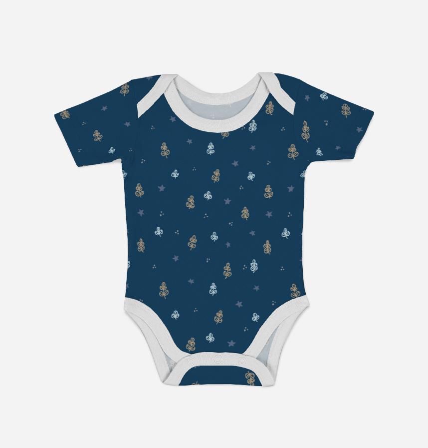 パターン名 手描きリーフと星【ネイビー】