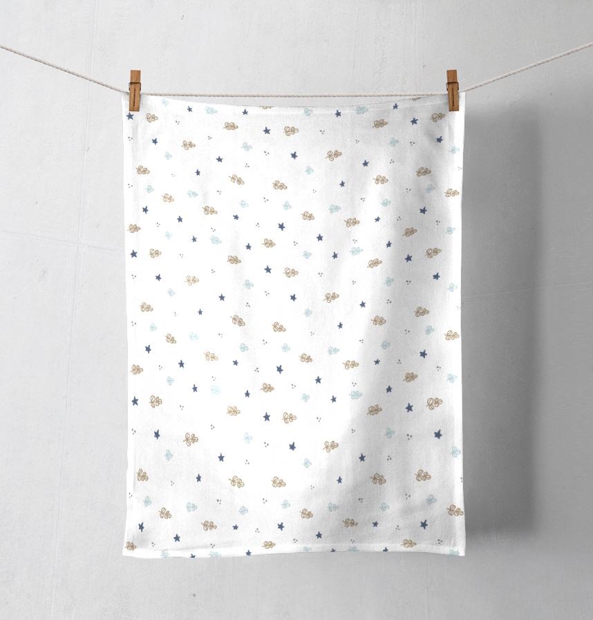 手描きの星と小さい葉っぱデザイン♡ブルー×ベージュ