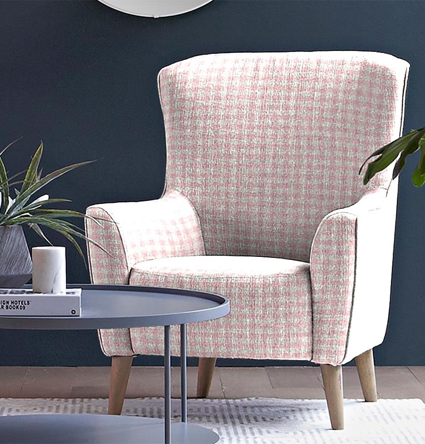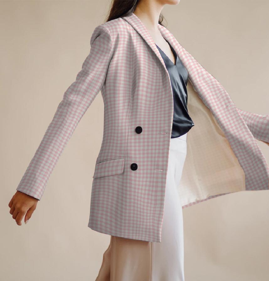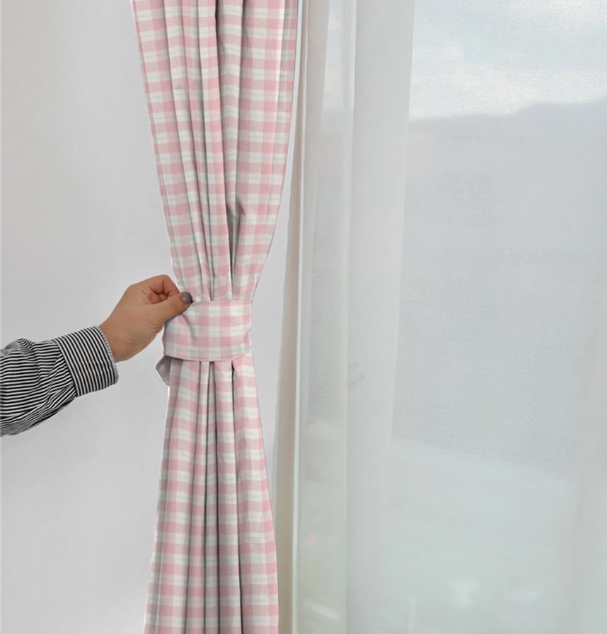 パターン説明 太い桜色と細いミント色の線が交差して作った大きなチェック柄