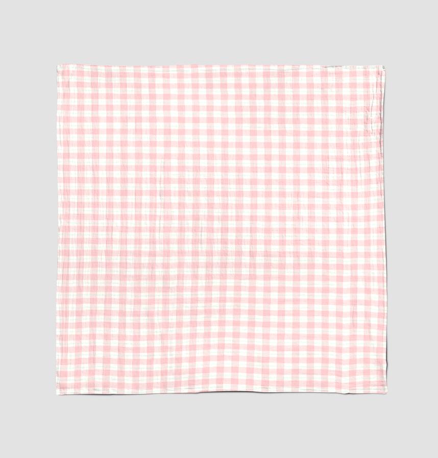 太い淡いピンクと細いミント色の線が交差しながら作られた大きな市松模様
