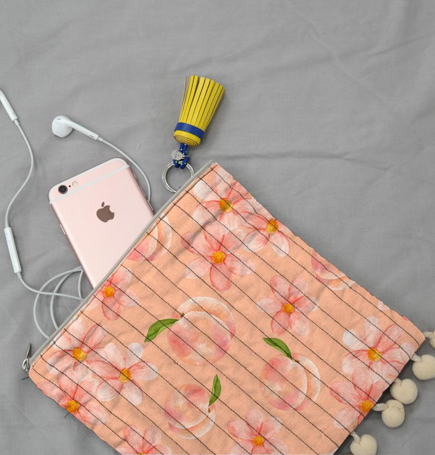 パターン説明 はにかみ屋のピンクの桃と芳しい花
