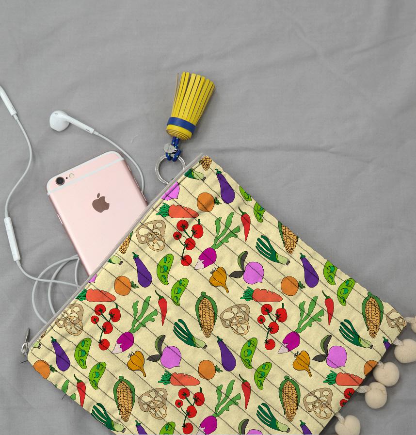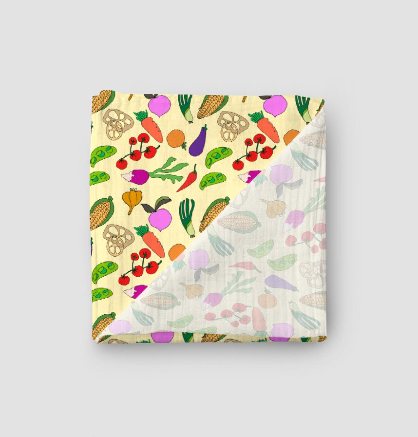 パターン説明 ドローイング野菜モチーフのスモールサイズ生地です