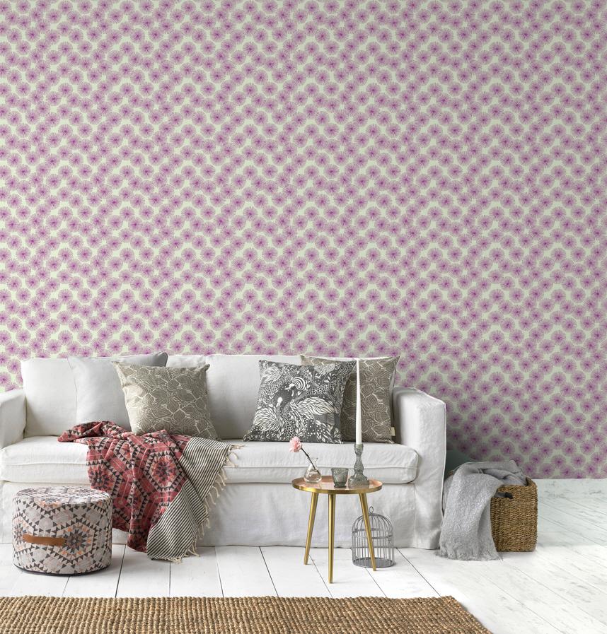 思わず目を奪われてしまった、花火のような、きらきらとした、鮮やかな赤紫の花の感じを、柄にしてみました。