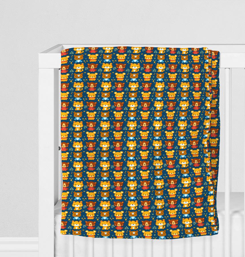 パターン説明 熊、虎、ライオンなどオレンジ色と茶色の暖かい色の動物たちが表現され、暖かくて暖かいパターンの感じを作ります。