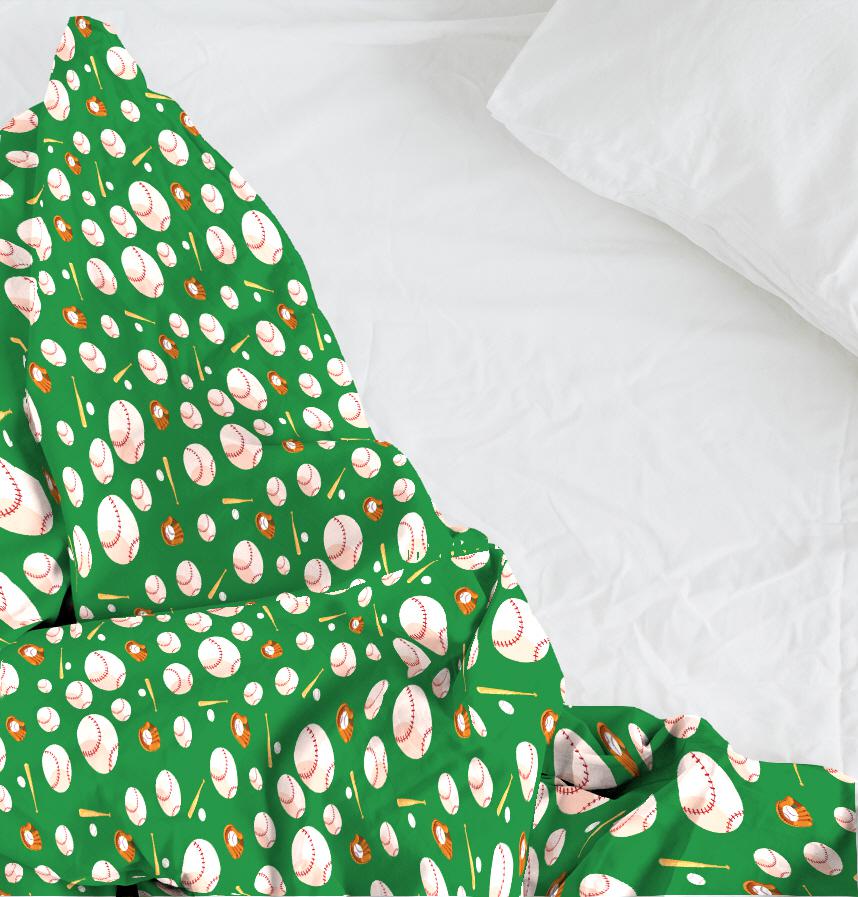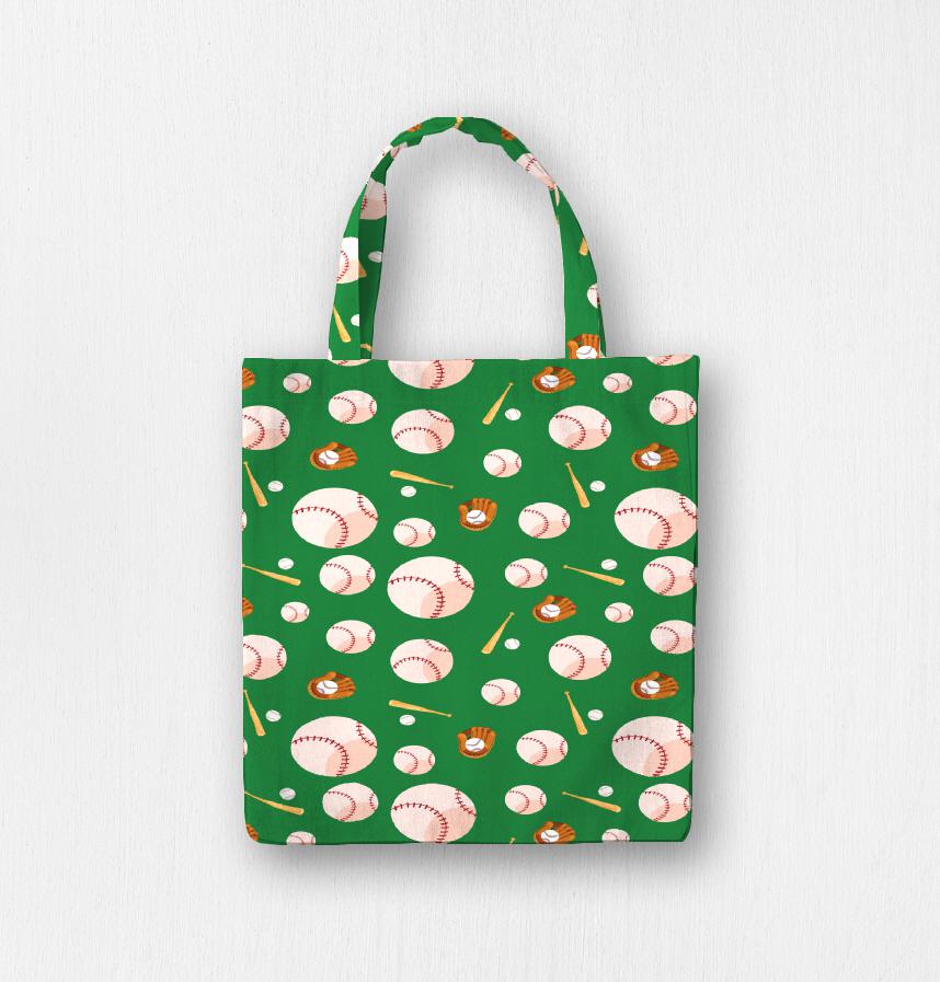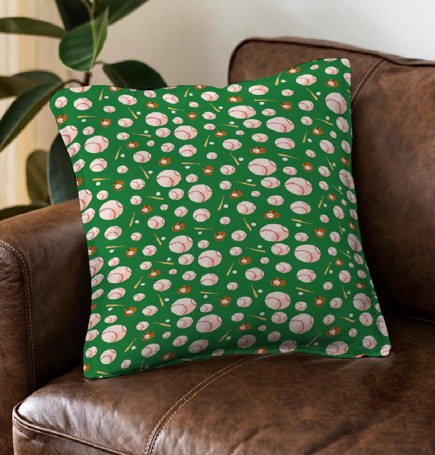 グリーンフィールドの上から広がる野球の情熱を込めたデザインです。このパターンは、緑の芝生を思い浮かべる緑色の背景に野球ボール、バット、グローブが調和して配置されており、活気に満ちたスポーツのエネルギーを伝えます。