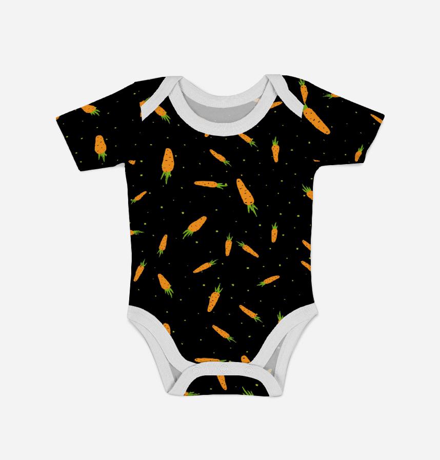 パターン名 愛らしい子供にんじんとドット柄の調和:黒色の背景