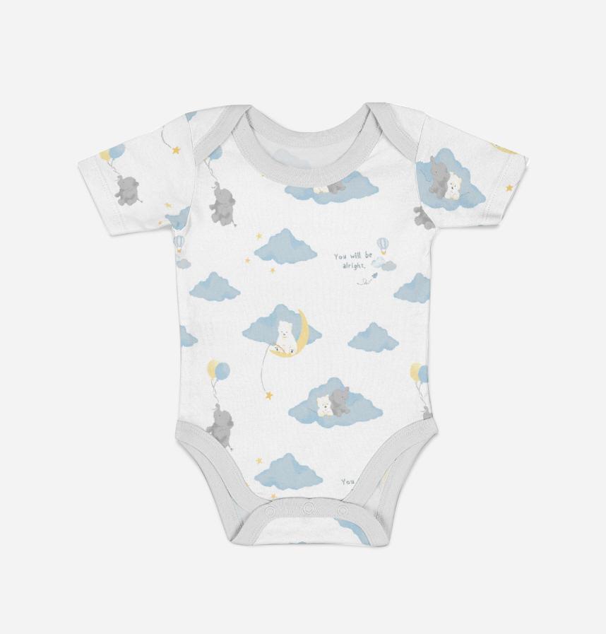 パターン説明 水彩風の雲とぞうとしろくま柄です。お空と風船のかわいく上品な印象のデザインです。