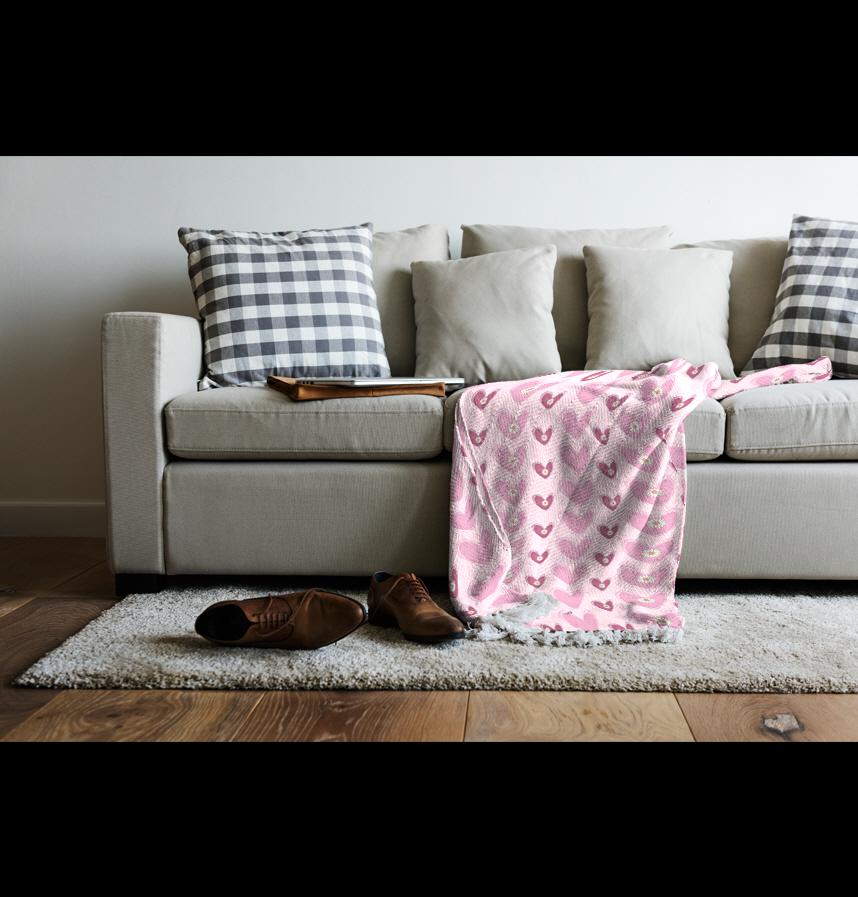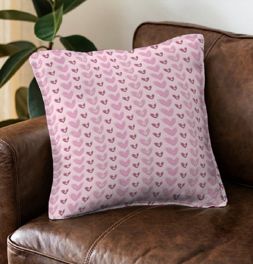 ピンク色の背景にピンク色のハートと白いデイジーが調和したデザインで