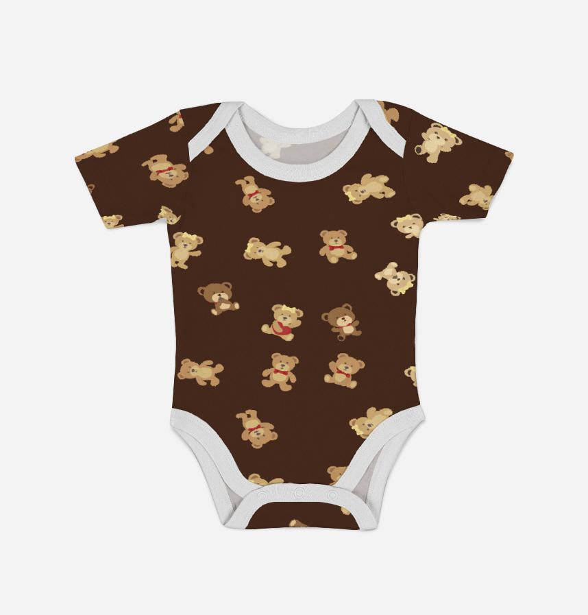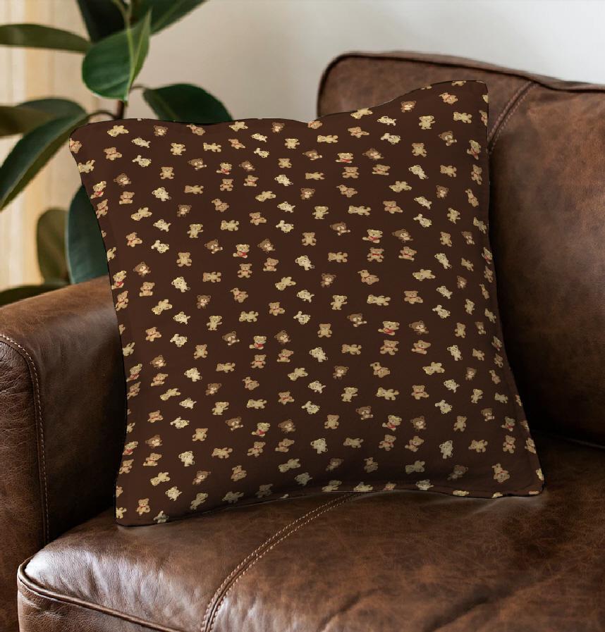 可愛らしいテディベアが様々なポーズをとって散らばっているデザインです。柔らかい茶色の背景の上にかわいいクマの人形が際立っており、各クマの人形が暖かくてふわふわの印象を与えます。さまざまなクマの人形がそれぞれの魅力を発散し、このパターンは暖かさを吹き込んでくれる感じを与えます。