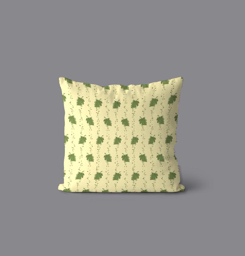 パターン説明 奥まった路地の入り口の塀で行き交う人々は喜ぶツタを描いたデザイン