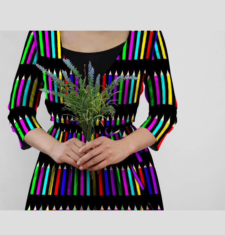 パターン説明 黒 地色 7色鉛筆