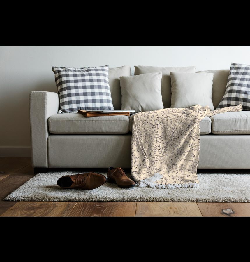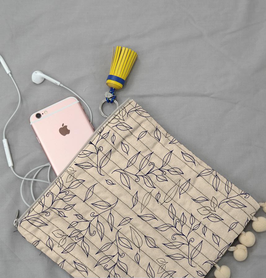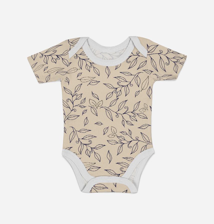 黒線だけで描かれた小さな葉がシンプルに配置されているデザイン