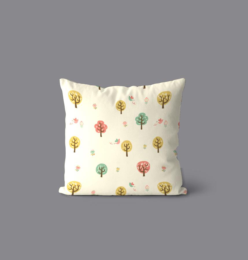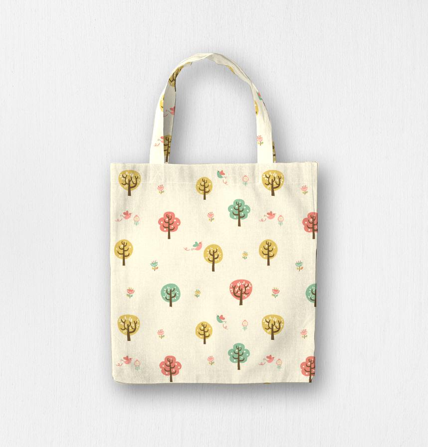 雲のような木と鳥の組み合わせでクッションやバッグ、子供服を作ってみてください^^