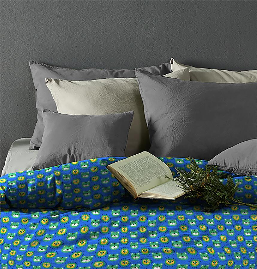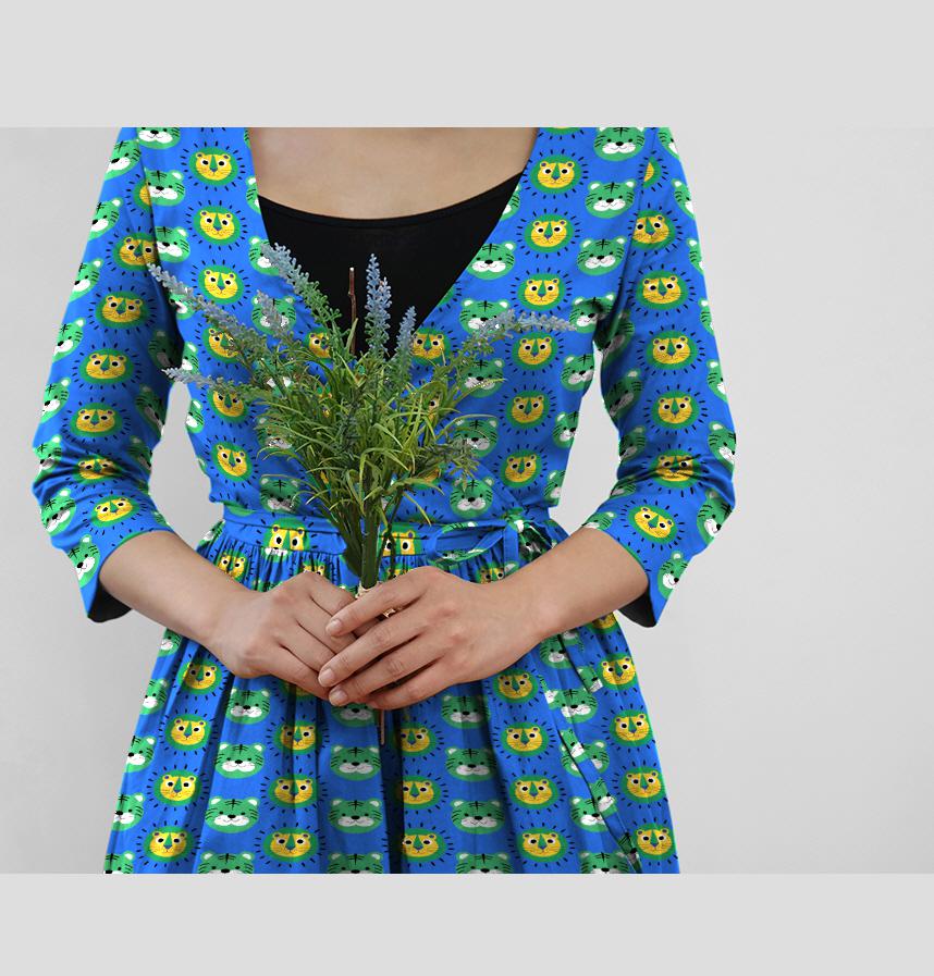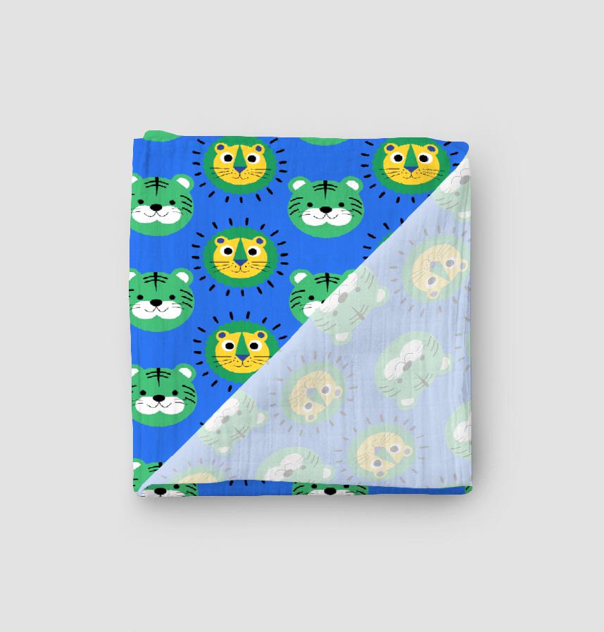 ライオンと虎の顔が繰り返し現れるかわいい柄です。