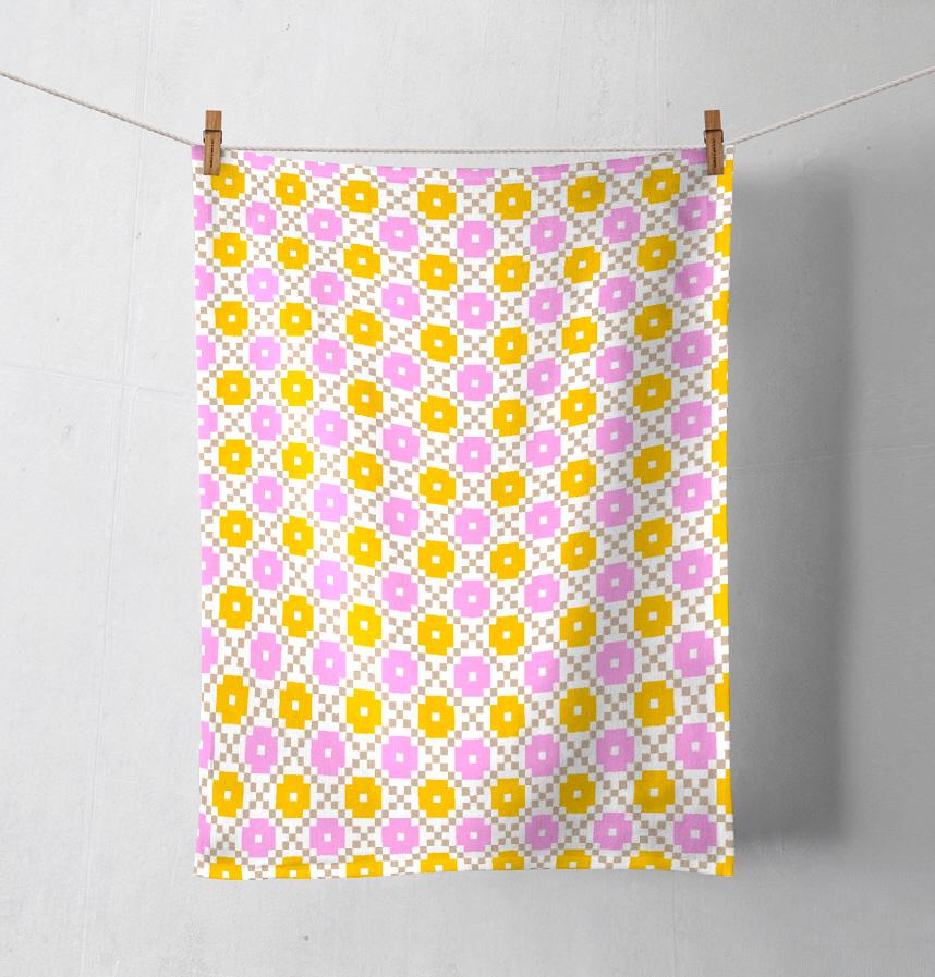 北欧風の丸と格子の模様です。