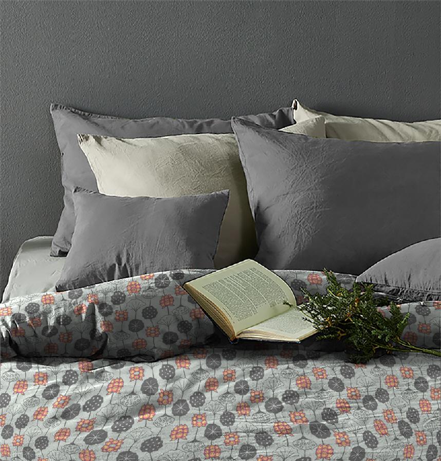 グレー地にグレーの葉とグラデーションのかかったピンク系の花の柄です。
