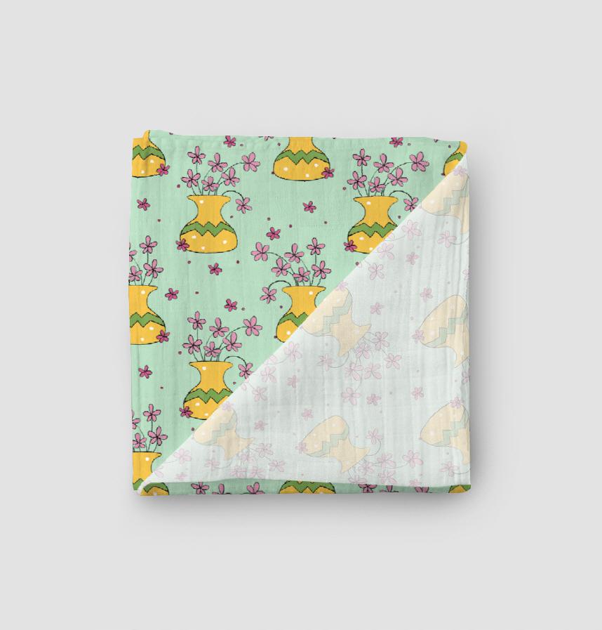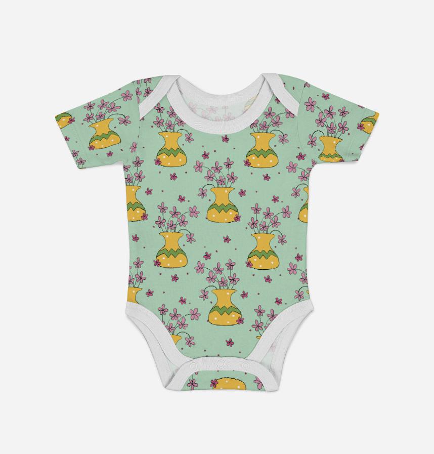 パターン説明 黄色い花瓶に入ったかわいい花々のパターン