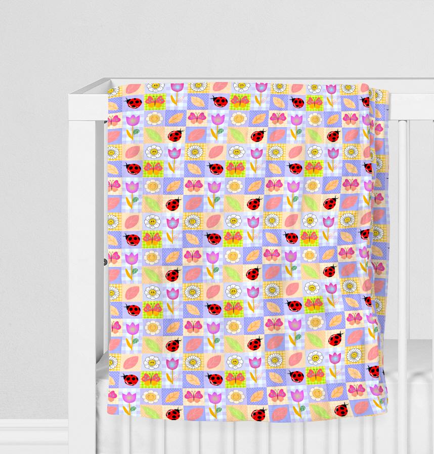 デザインはカラフルで愉快で、様々なパステル柄の背景に笑顔のデイジー、