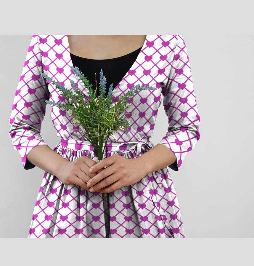 パターン名 紫色のハートと格子模様