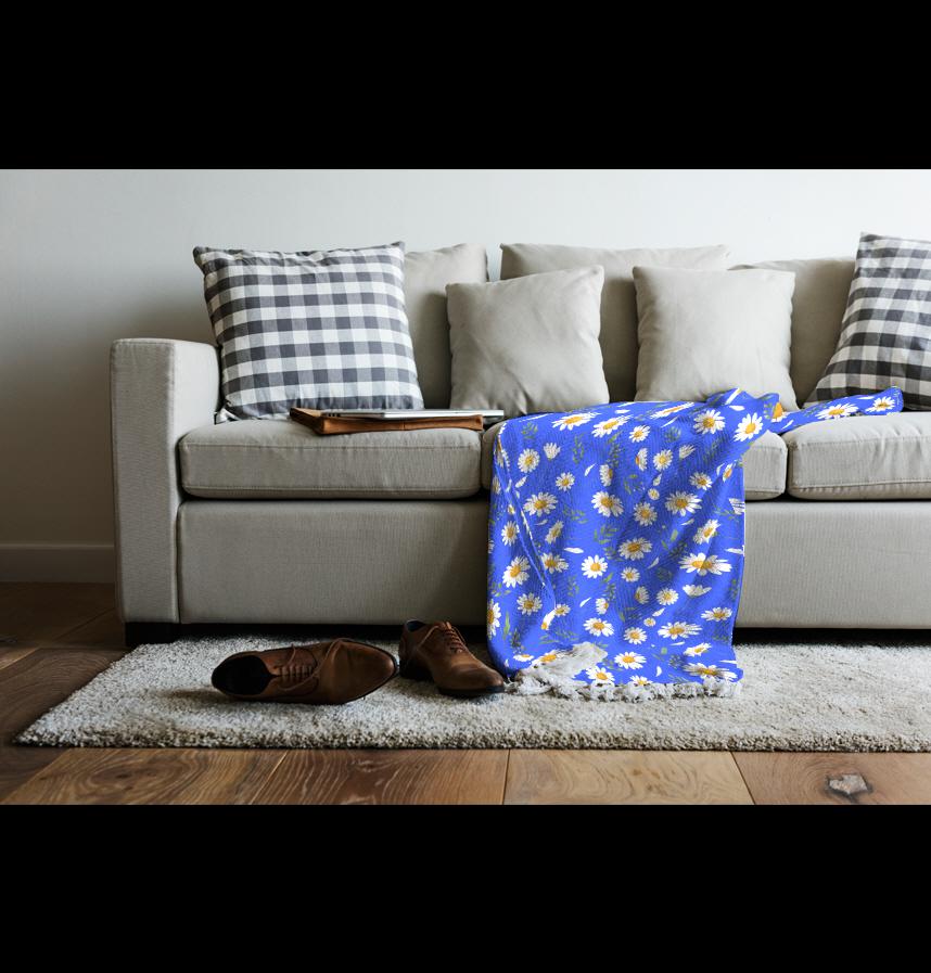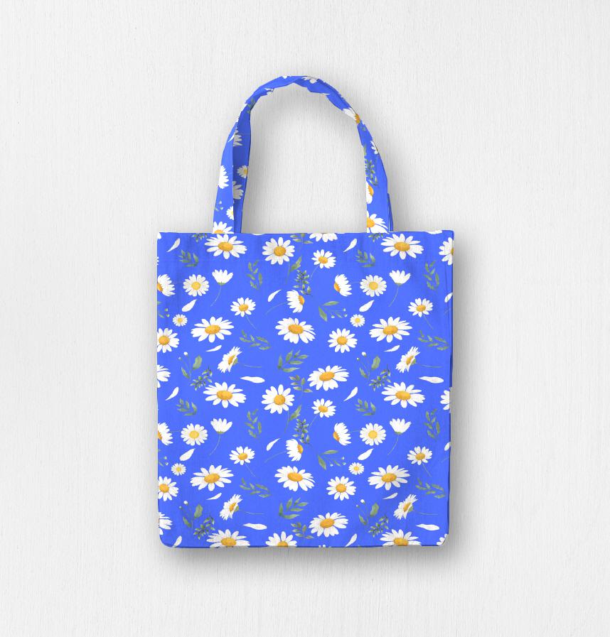 パターン説明 青を背景に清楚な白い野菊がさらに爽やかなデザイン