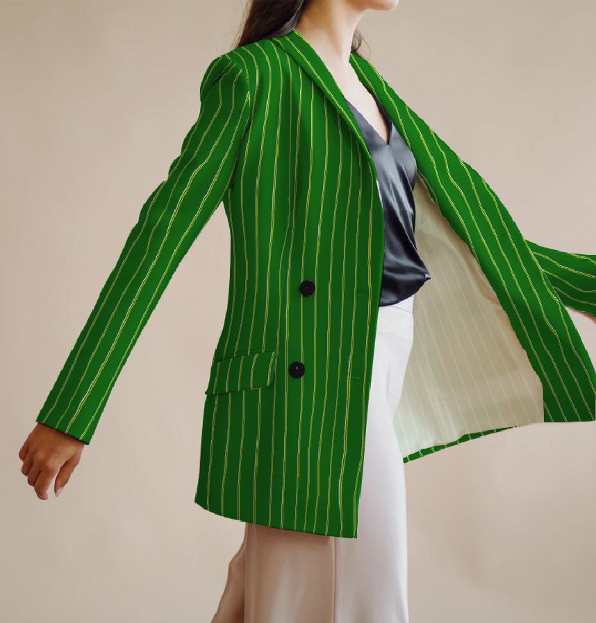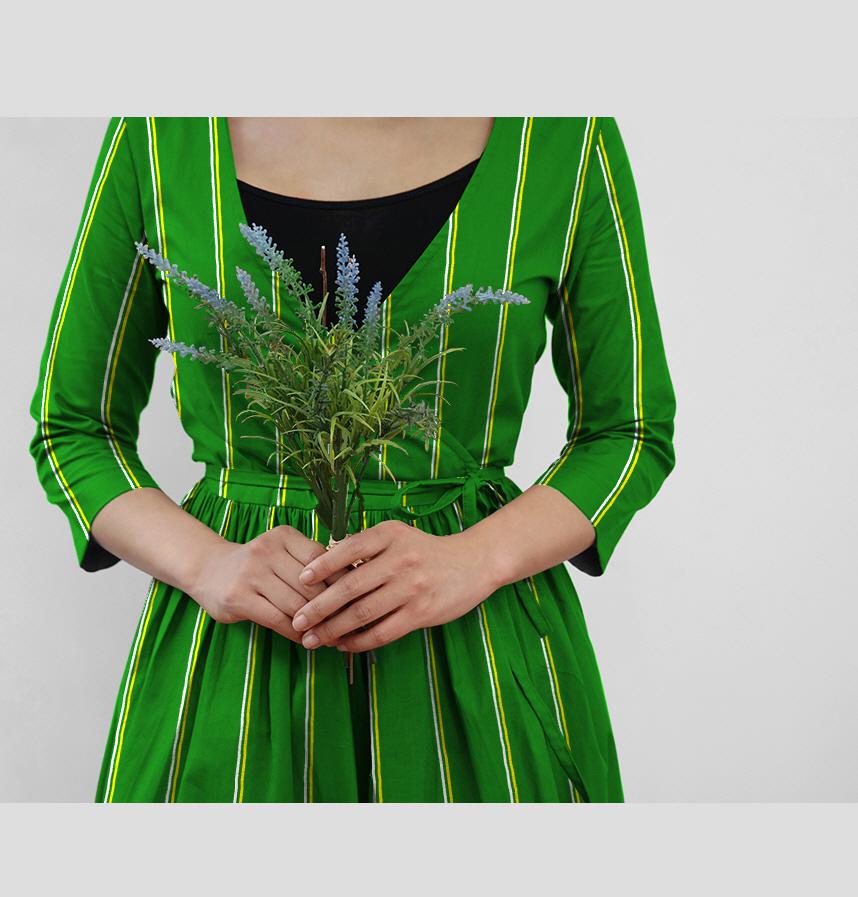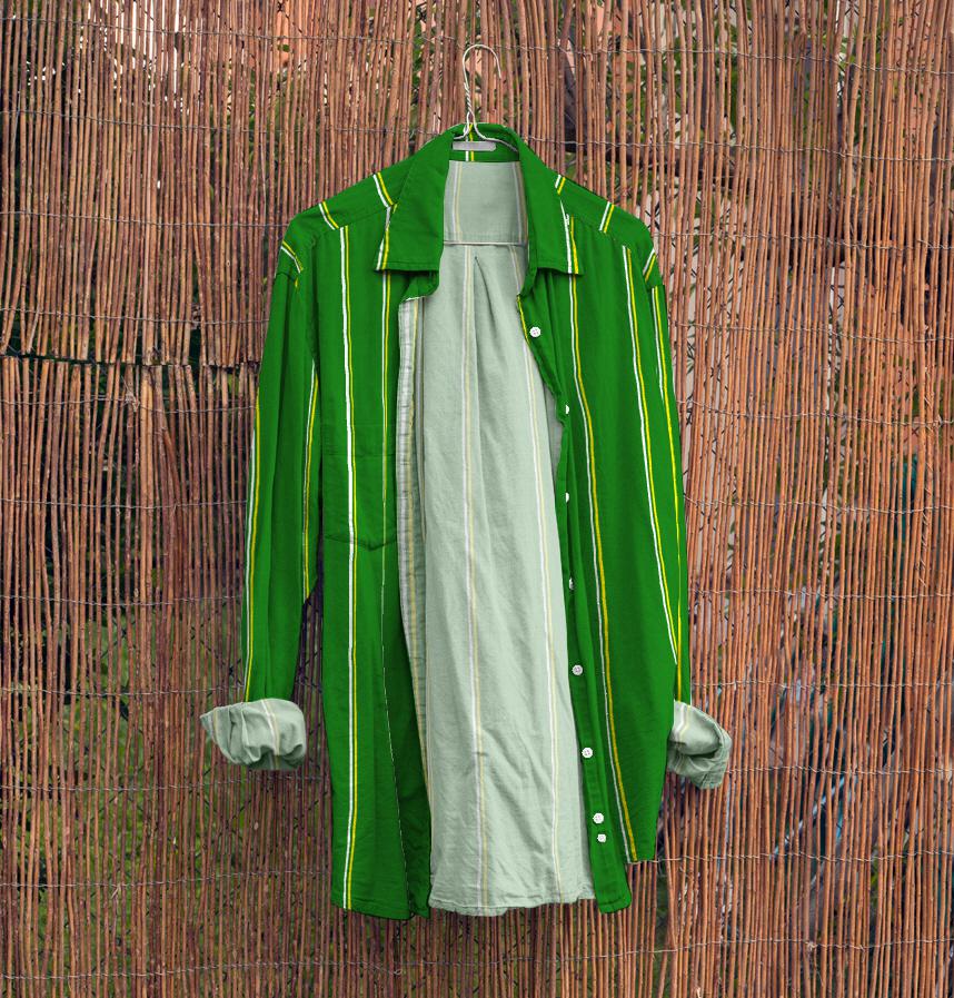 パターン説明 緑地に色替えが異なる2本がポイント、白と黄色のストライプ