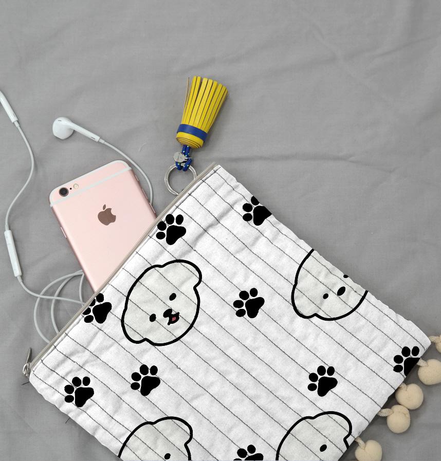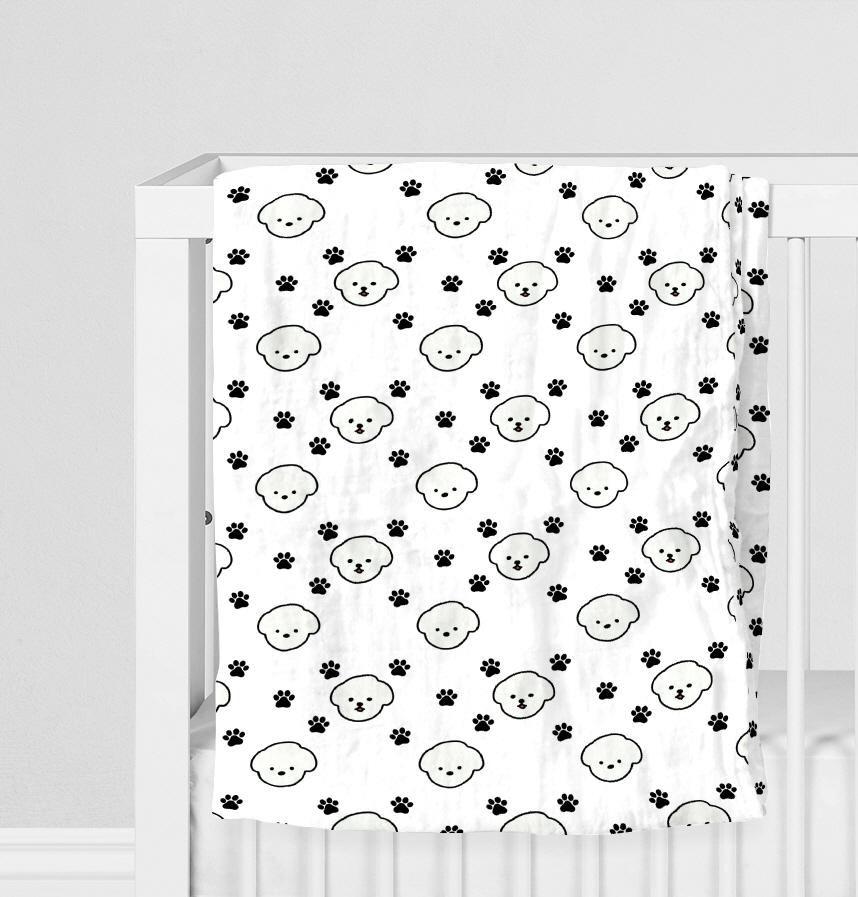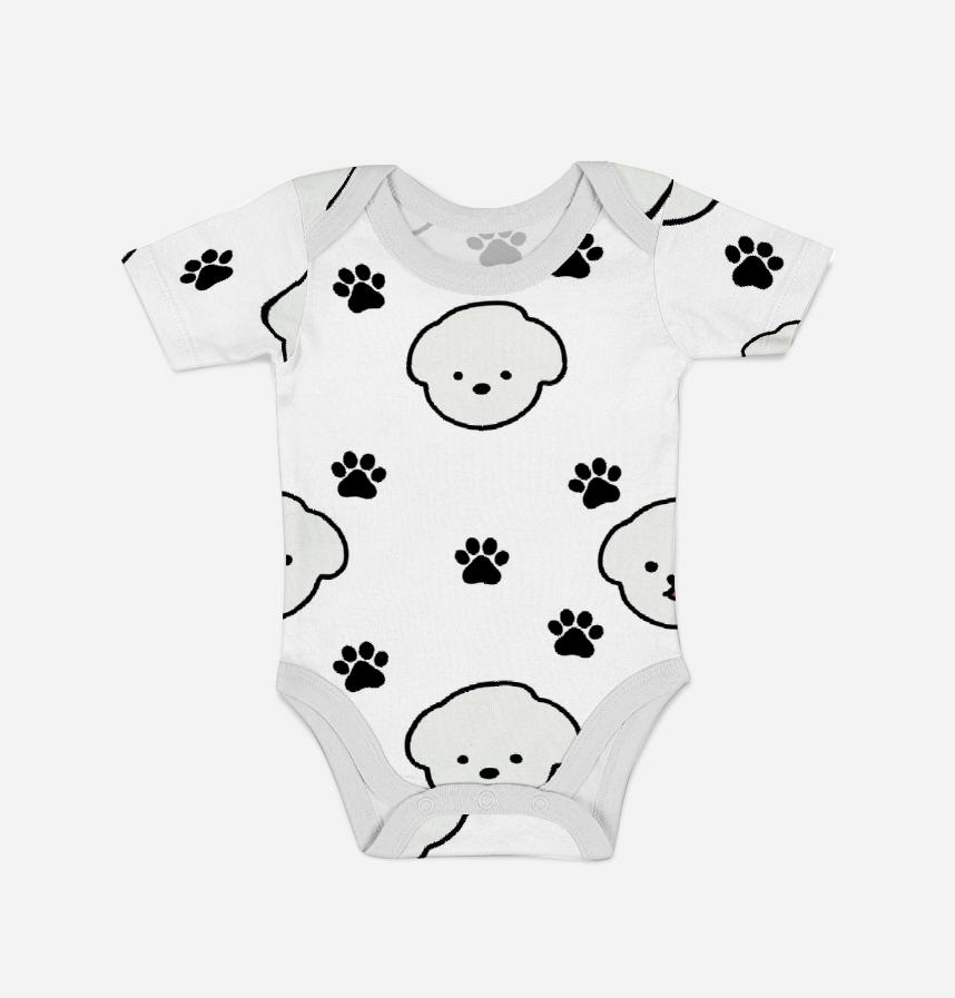 笑顔の子犬と無表情の子犬が可愛く、サイサイに足跡もハッキリとしたパターン