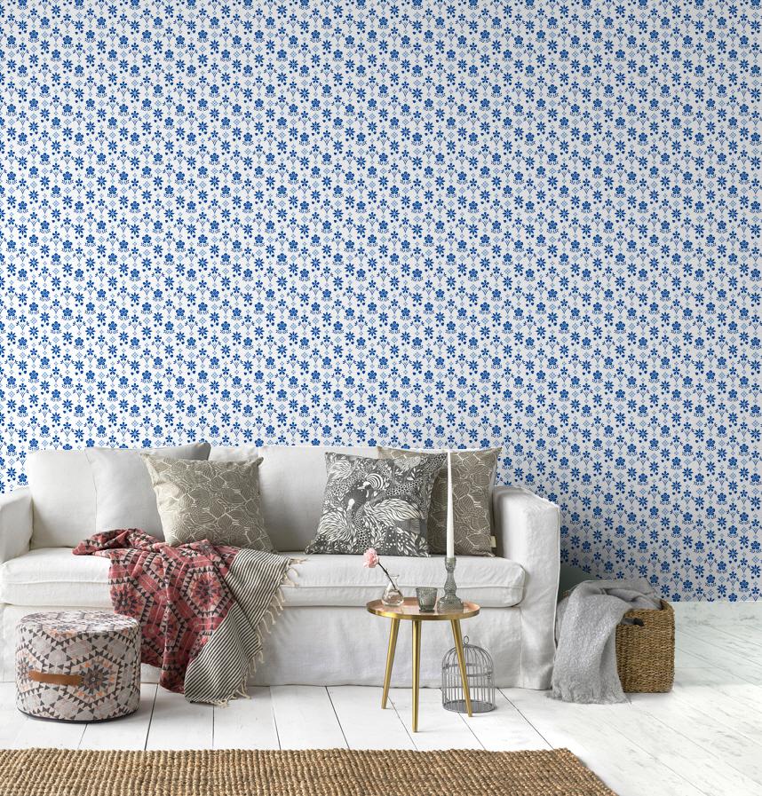 素朴で愛らしい 青(Azur)がきれいなポルトガルのタイル風のもよう