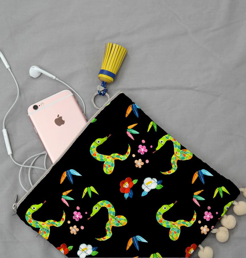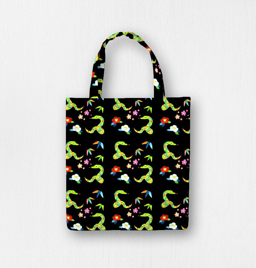 パターン説明 2025年(令和7年)巳年にちなんで、カラフルな蛇と正月モチーフのパターンを作りました。