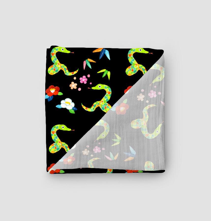 蛇と正月モチーフのパターンです。