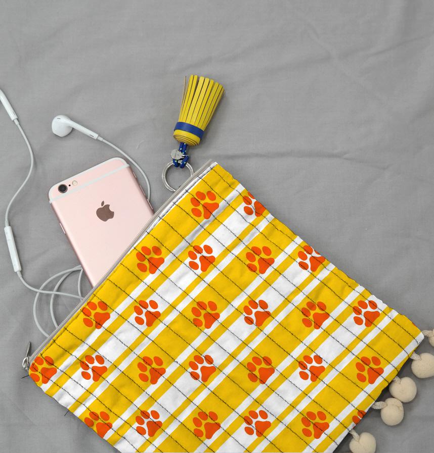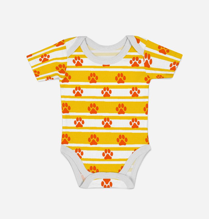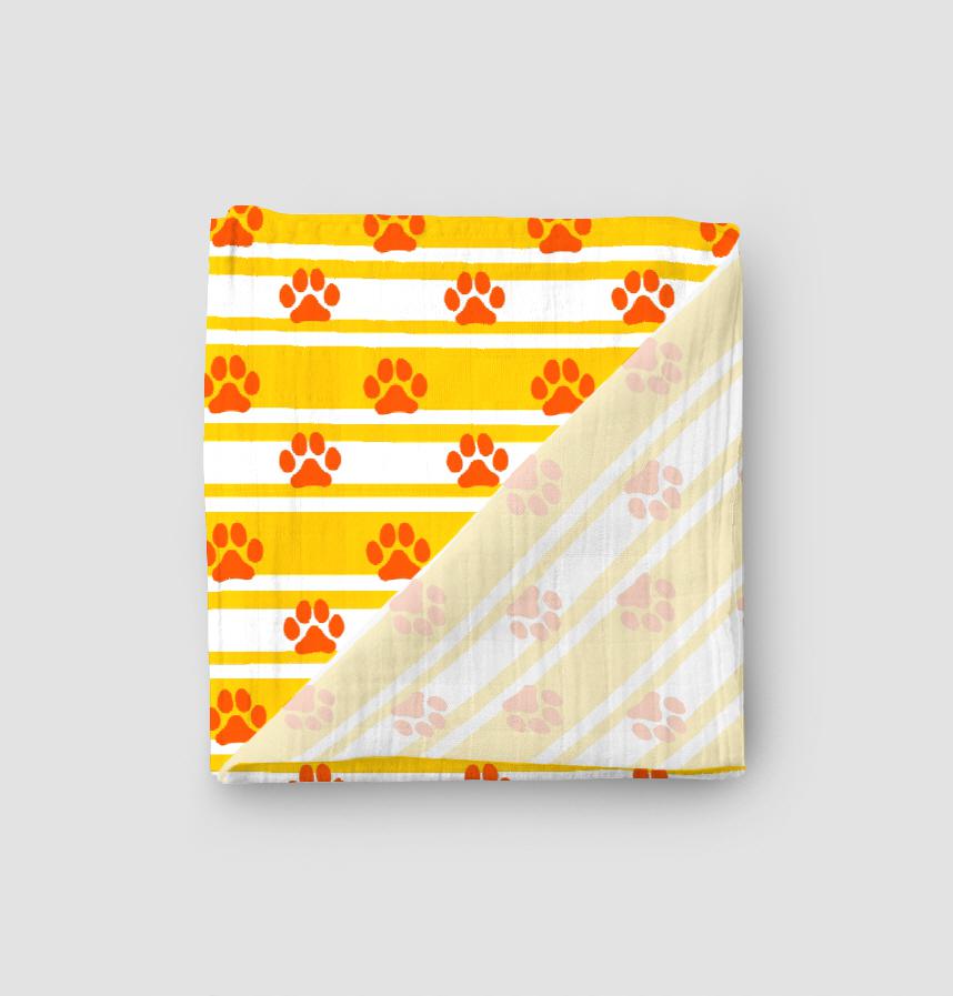 パターン名 ボーダーと肉球 黄色オレンジ