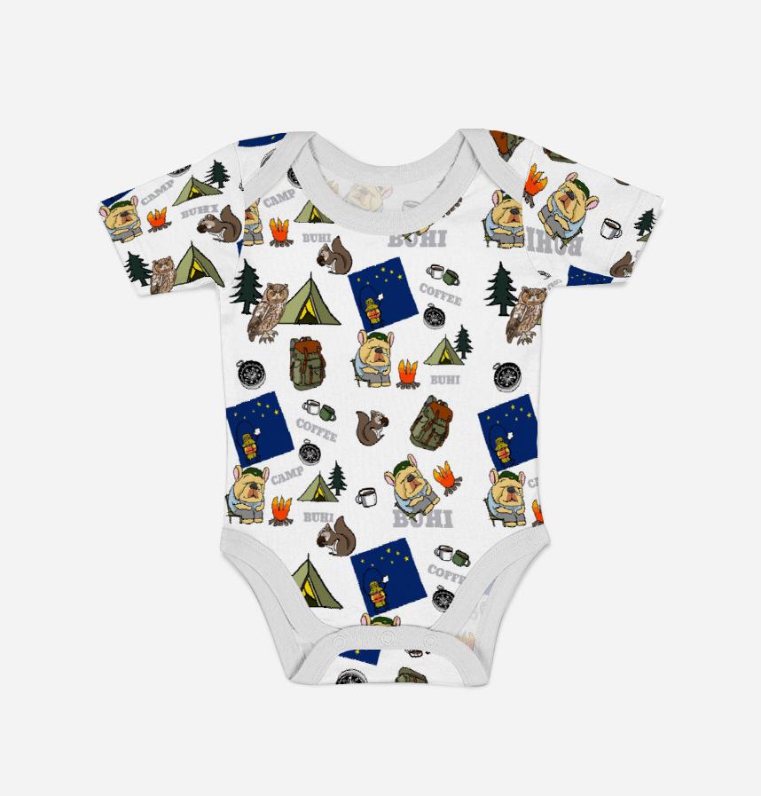 キャンプ中のフレンチブルドッグのデザインです。
