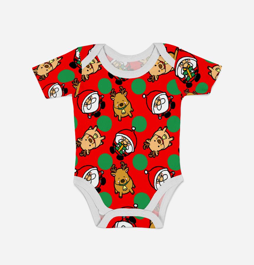 パターン説明 まんまるなサンタとトナカイのドット柄です。