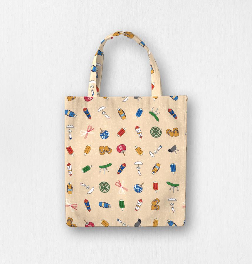 パターン説明 日本の夏といえば思い浮かぶ様々なアイテムを可愛いイラストで表現したデザインです。